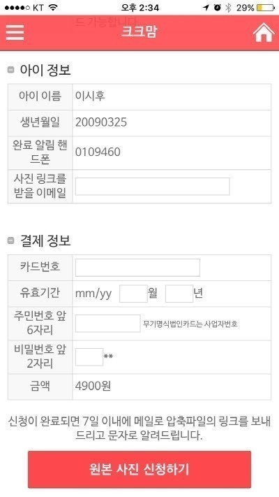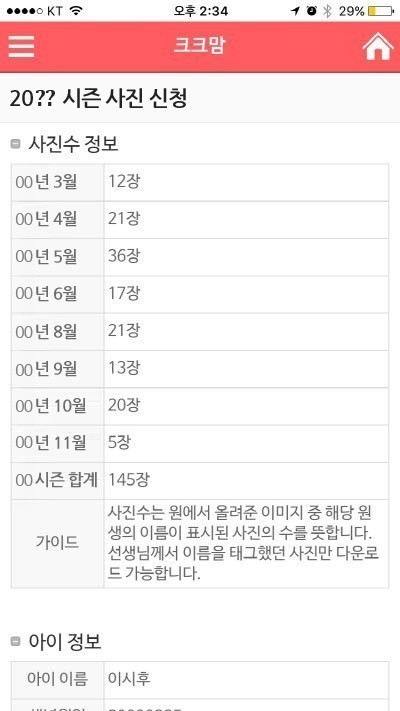 다운로드 서비스 비용은 4,900원이며, 원생별로 사진을 분류하지 않는 원은 서비스가 불가능 합니다.